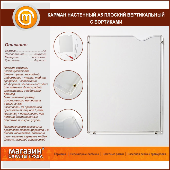Карман настенный А5 плоский вертикальный с бортиками в Улан-Удэ купить