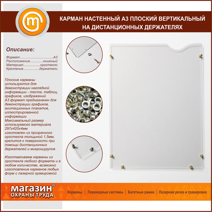 Карман настенный А3 плоский вертикальный на дистанционных держателях в Улан-Удэ купить