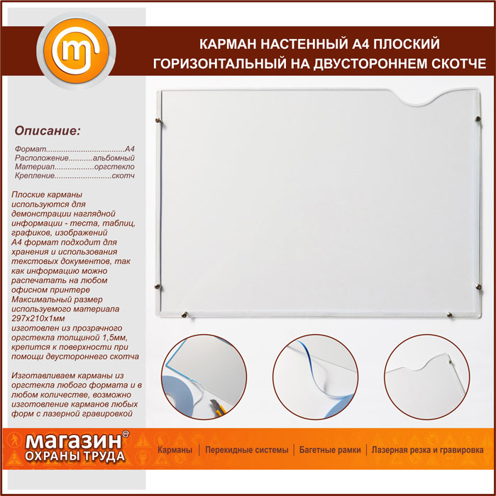 Карман настенный А4 плоский горизонтальный на двустороннем скотче в Улан-Удэ купить