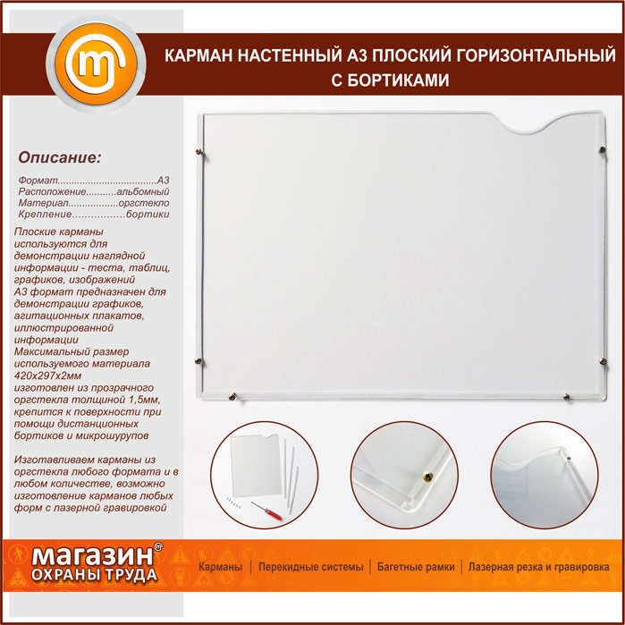 Карман настенный А3 плоский горизонтальный с бортиками в Улан-Удэ купить
