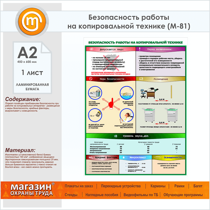 Плакат «Безопасность работы на копировальной технике» (М-81, ламинированная бумага, А2, 1 лист) в Улан-Удэ купить