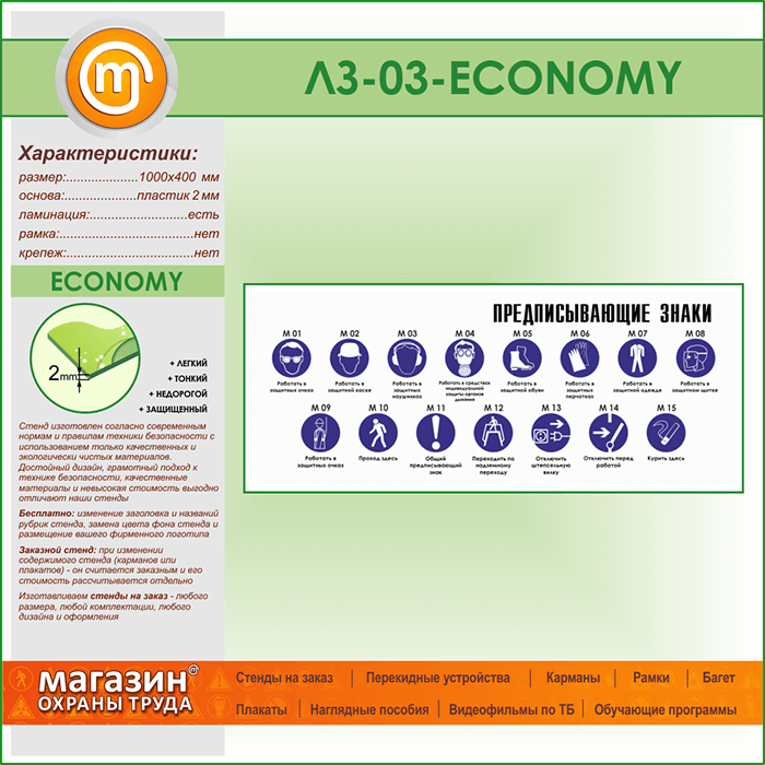 Стенд «Предписывающие знаки» (LZ-03-ECONOMY) в Улан-Удэ купить