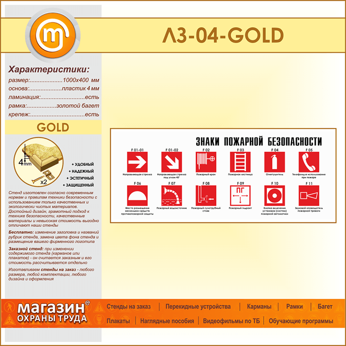 Стенд «Знаки пожарной безопасности» (LZ-04-GOLD) в Улан-Удэ купить