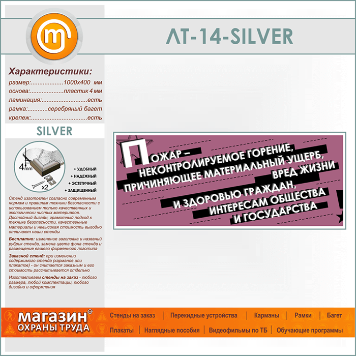 Лозунг «Пожар - неконтроллируемое горение...» (LT-14-SILVER) в Улан-Удэ купить