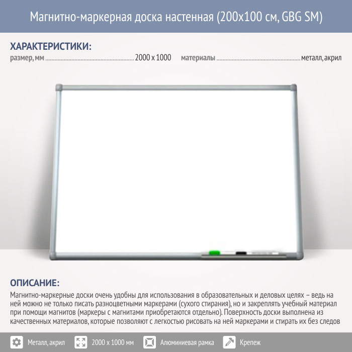 Магнитно-маркерная доска настенная (200x100 см, GBG SM) в Улан-Удэ купить