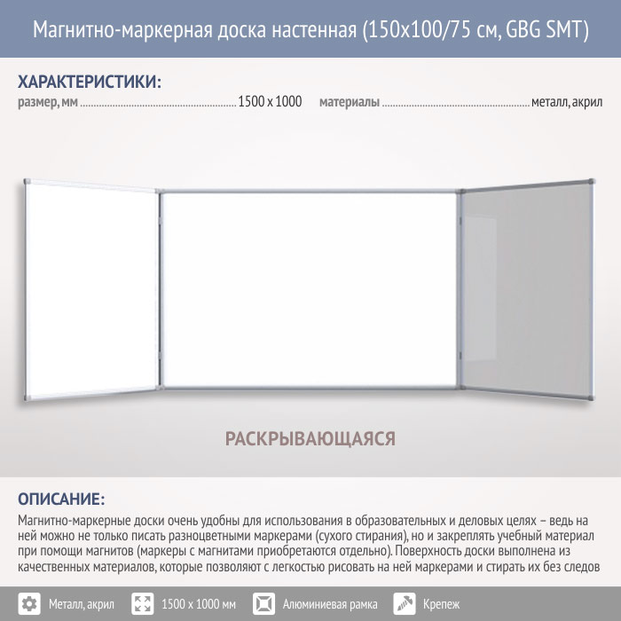Магнитно-маркерная доска настенная (150x100/75 см, GBG SMT) в Улан-Удэ купить