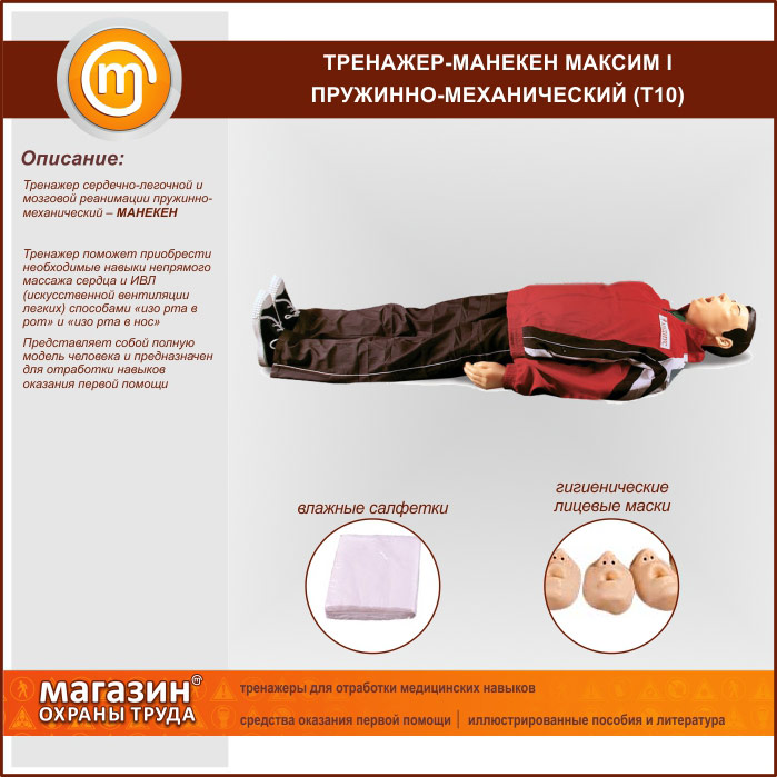 | Тренажер сердечно-легочной и мозговой реанимации «Максим I-01», Т10 В/Р (пружинно-механический, манекен) | Тренажер сердечно-легочной и мозговой реанимации «Максим I-01», Т10 В/Р (пружинно-механический, манекен) |