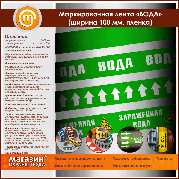 Маркировочная лента «ВОДА» (ширина 100 мм, самоклеящаяся плёнка) в Улан-Удэ купить