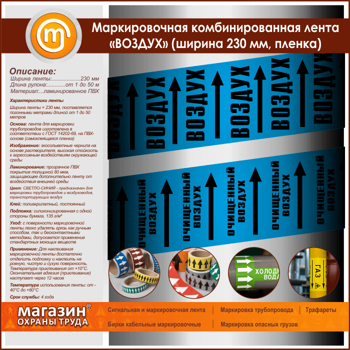 Маркировочная комбинированная лента «ВОЗДУХ» (ширина 230 мм, самоклеящаяся плёнка) в Улан-Удэ купить
