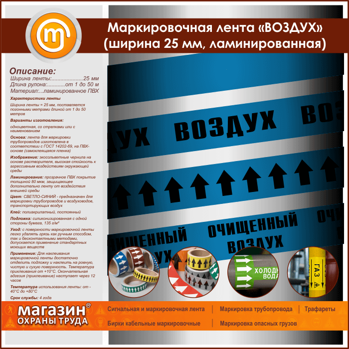 Маркировочная лента «ВОЗДУХ» (ширина 25 мм, самоклеящаяся плёнка с ламинированием) в Улан-Удэ купить