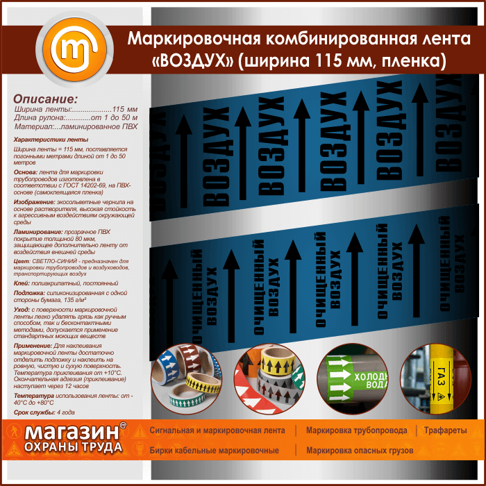Маркировочная комбинированная лента «ВОЗДУХ» (ширина 115 мм, самоклеящаяся плёнка с ламинированием) в Улан-Удэ купить