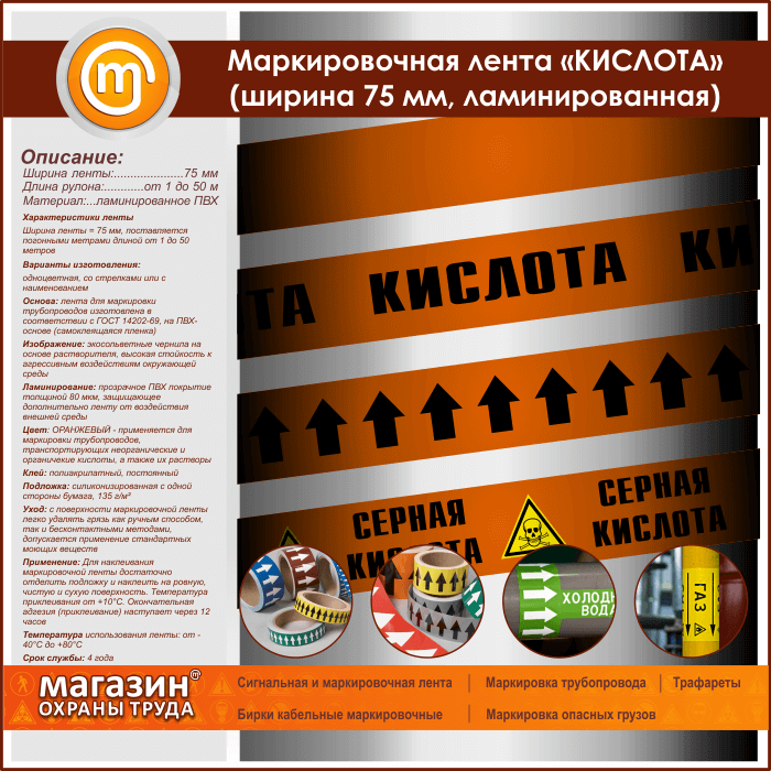 Маркировочная лента «КИСЛОТА» (ширина 75 мм, самоклеящаяся плёнка с ламинированием) в Улан-Удэ купить