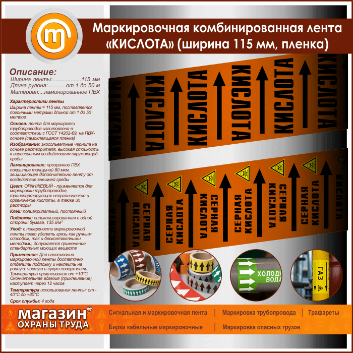 Маркировочная комбинированная лента «КИСЛОТА» (ширина 115 мм, самоклеящаяся плёнка с ламинированием) в Улан-Удэ купить