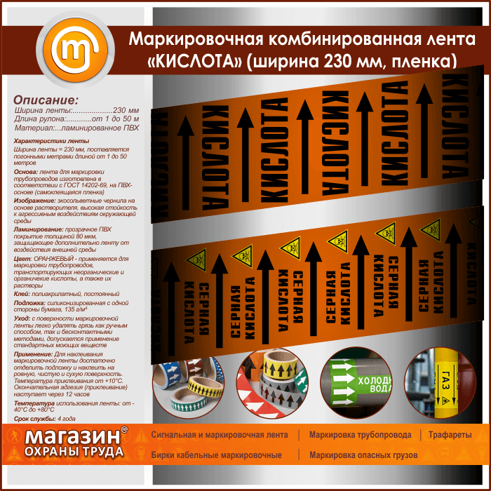Маркировочная комбинированная лента «КИСЛОТА» (ширина 230 мм, самоклеящаяся плёнка с ламинированием) в Улан-Удэ купить