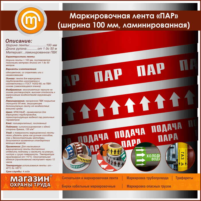 Маркировочная лента «ПАР» (ширина 100 мм, самоклеящаяся плёнка с ламинированием) в Улан-Удэ купить