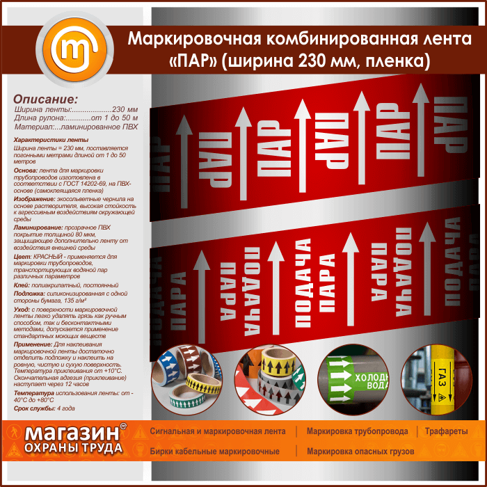 Маркировочная комбинированная лента «ПАР» (ширина 230 мм, самоклеящаяся плёнка с ламинированием) в Улан-Удэ купить