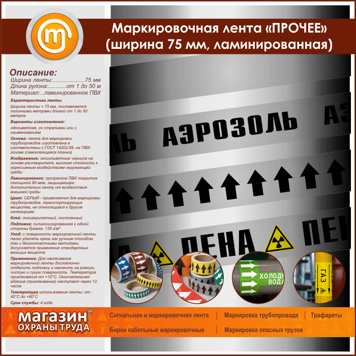 Маркировочная лента «ПРОЧИЕ ВЕЩЕСТВА» (ширина 75 мм, самоклеящаяся плёнка) в Улан-Удэ купить