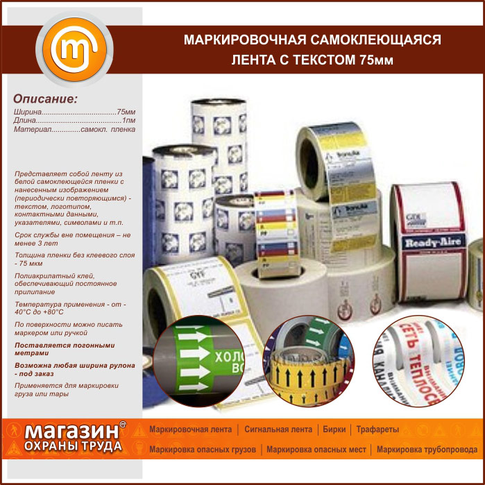 Маркировочная самоклеящаяся лента с текстом 75 мм в Улан-Удэ купить