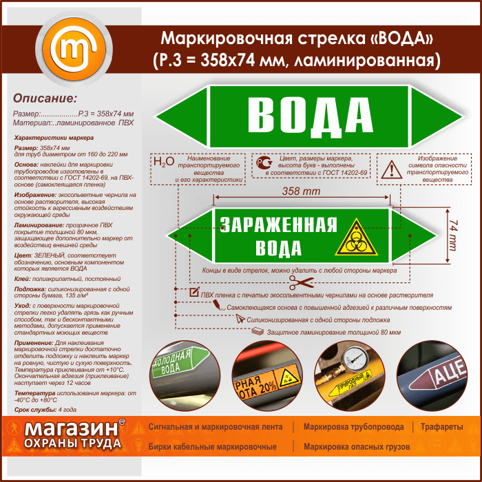 Маркировочная стрелка «ВОДА» (P.3 = 358х74 мм, самоклеящаяся плёнка с ламинированием) в Улан-Удэ купить