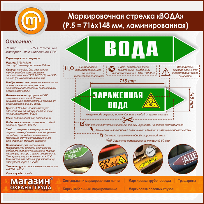 Маркировочная стрелка «ВОДА» (P.5 = 716х148 мм, самоклеящаяся плёнка с ламинированием) в Улан-Удэ купить