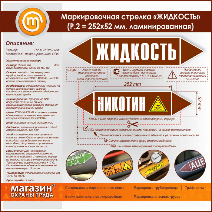 Маркировочная стрелка «ЖИДКОСТЬ» (P.2 = 252х52 мм, самоклеящаяся плёнка с ламинированием) в Улан-Удэ купить