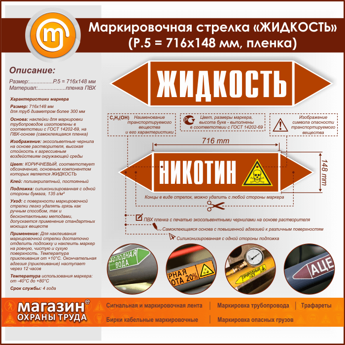 Маркировочная стрелка «ЖИДКОСТЬ» (P.5 = 716х148 мм, самоклеящаяся плёнка) в Улан-Удэ купить