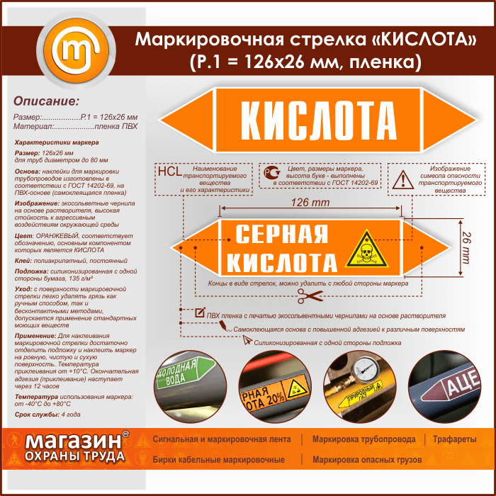 Маркировочная стрелка «КИСЛОТА» (Р.1 = 126х26 мм, самоклеящаяся плёнка) в Улан-Удэ купить