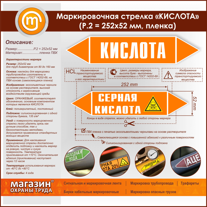 Маркировочная стрелка «КИСЛОТА» (P.2 = 252х52 мм, самоклеящаяся плёнка) в Улан-Удэ купить