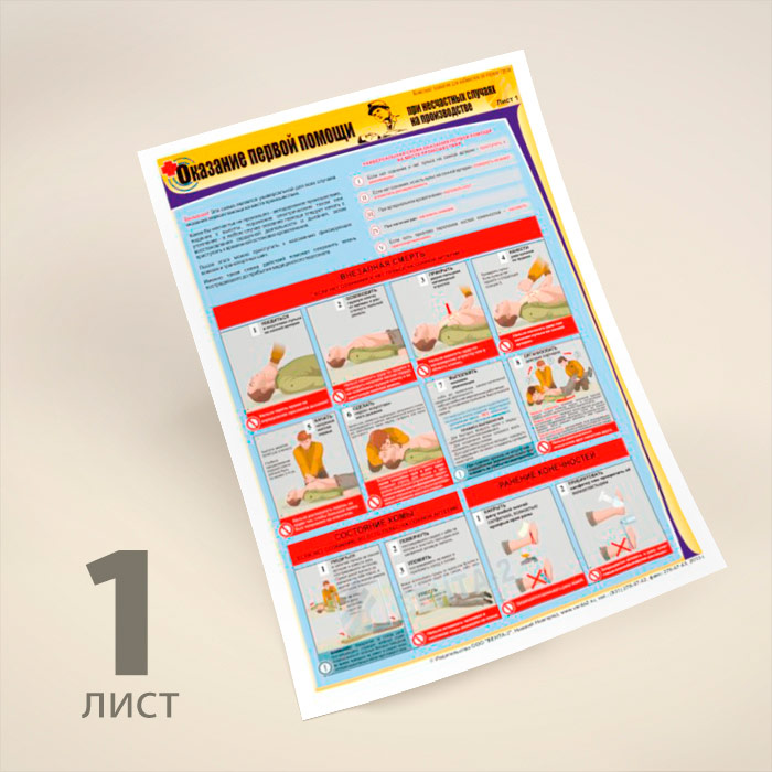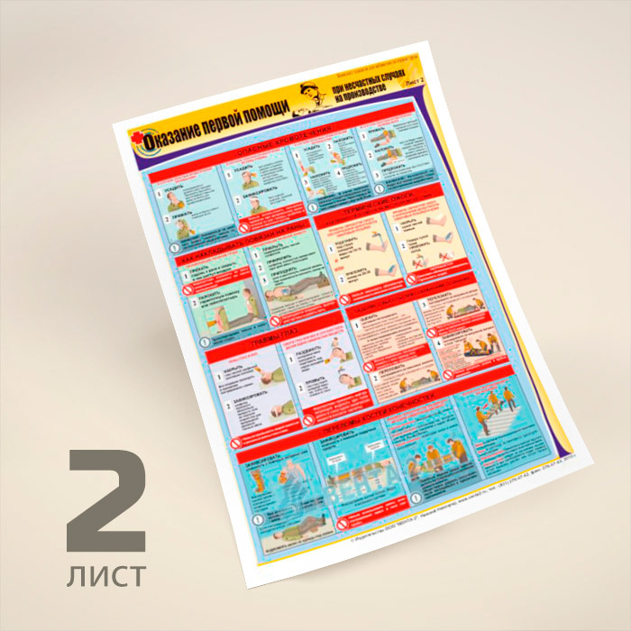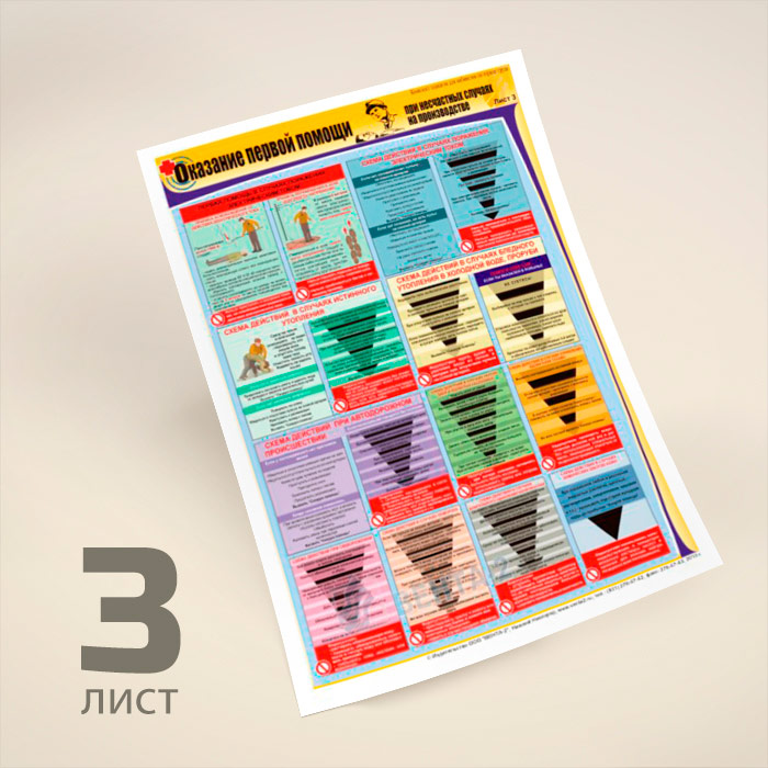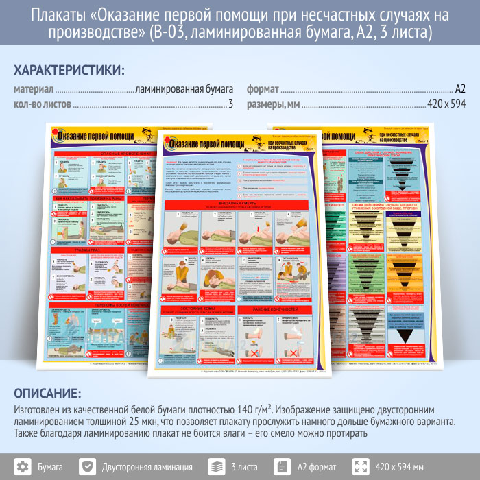 Плакаты «Оказание первой помощи при несчастных случаях на производстве» (В-03, ламинированная бумага, А2, 3 листа) в Улан-Удэ купить
