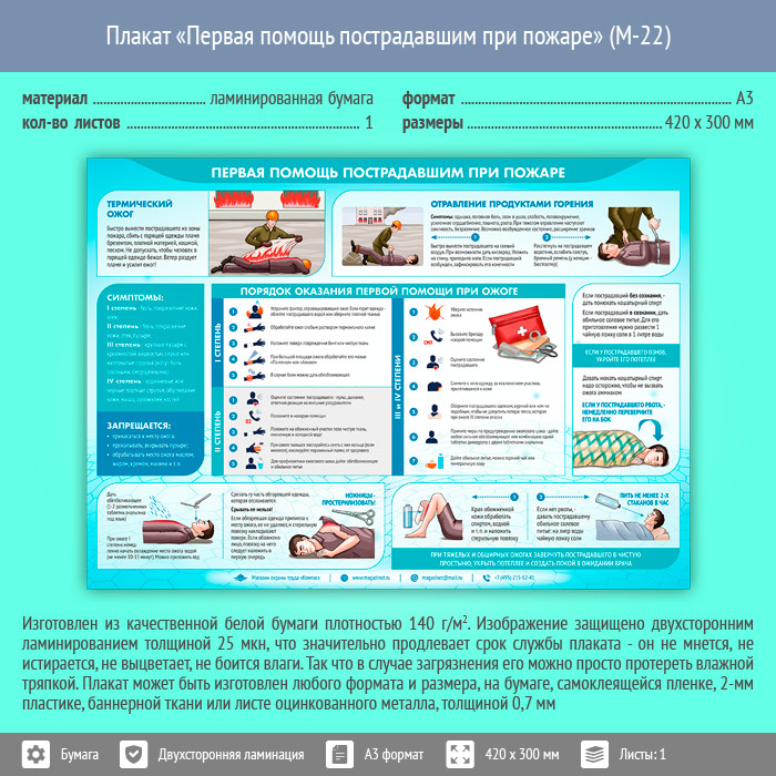 Плакат «Первая помощь пострадавшим при пожаре» (М-22, ламинированная бумага, А3, 1 лист) в Улан-Удэ купить