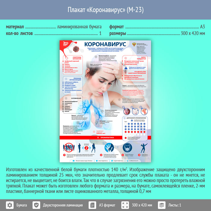 Плакат «Коронавирус» (М-23, ламинированная бумага, А3, 1 лист) в Улан-Удэ купить