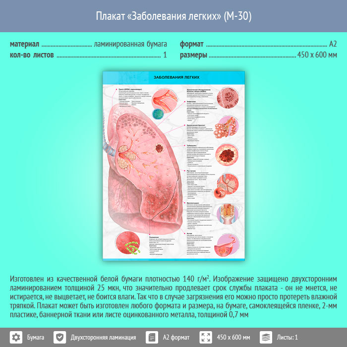 Плакат «Заболевания легких» (М-30, ламинированная бумага, А2, 1 лист) в Улан-Удэ купить