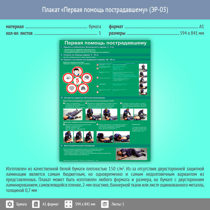 Плакат «Первая помощь пострадавшему» (ЭР-03, бумага, А1, 1 лист) в Улан-Удэ купить