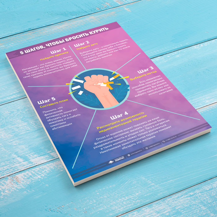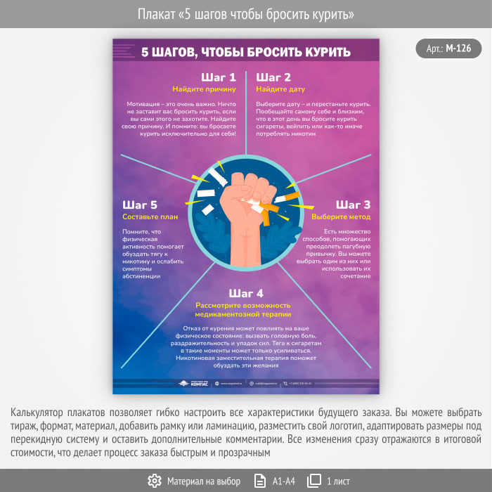 Плакат «5 шагов чтобы бросить курить» (М-126, 1 лист) в Улан-Удэ купить