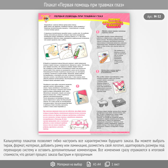 Плакат «Первая помощь при травмах глаз» (М-32, 1 лист) в Улан-Удэ купить