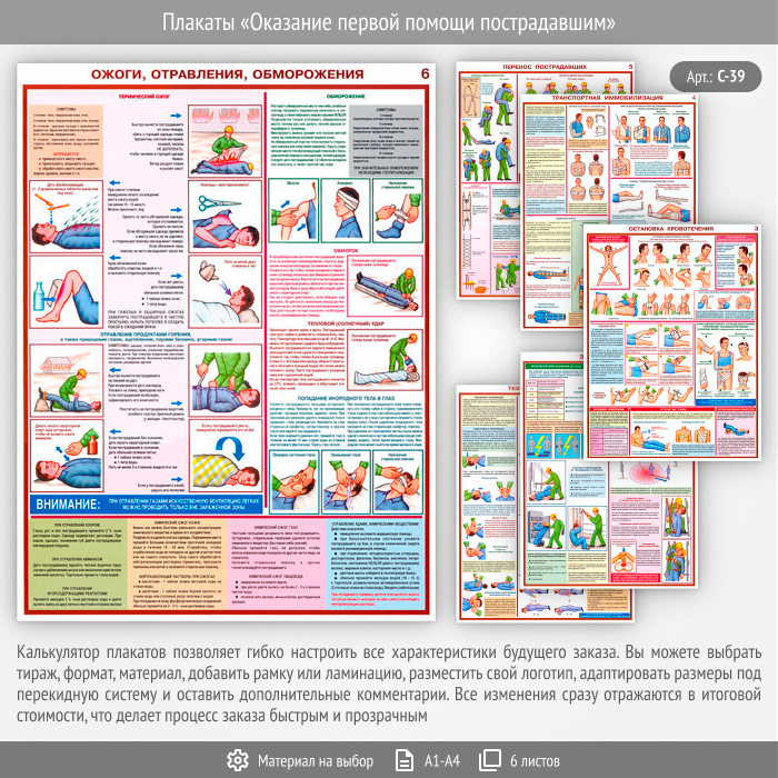 Плакат «Оказание первой помощи пострадавшим» (С-39, 6 листов) в Улан-Удэ купить