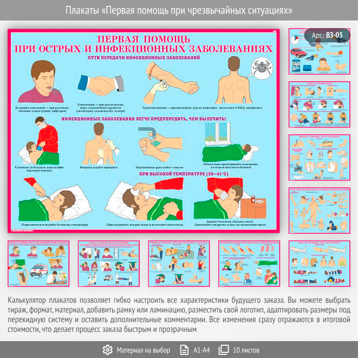 Плакаты «Первая помощь при чрезвычайных ситуациях» (ВЗ-05, 10 листов) в Улан-Удэ купить