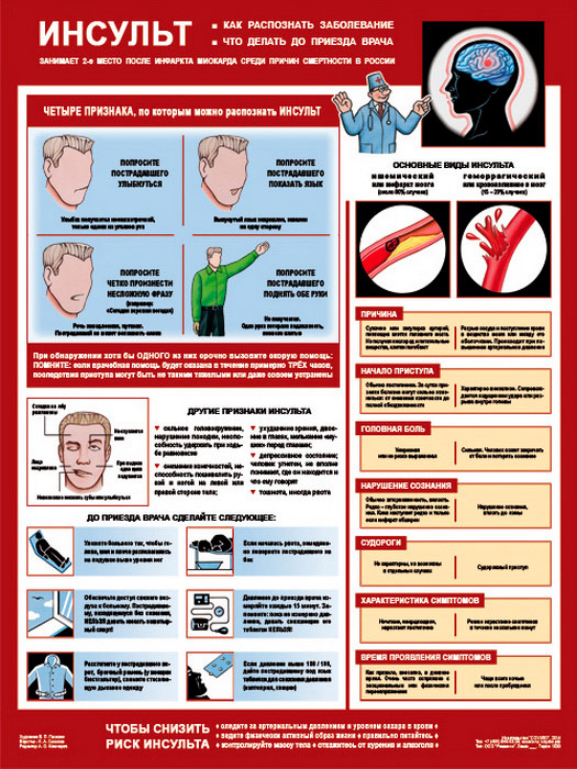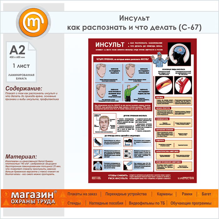 Плакат «Инсульт - как распознать и что делать» (С-67, ламинированная бумага, А2, 1 лист) в Улан-Удэ купить