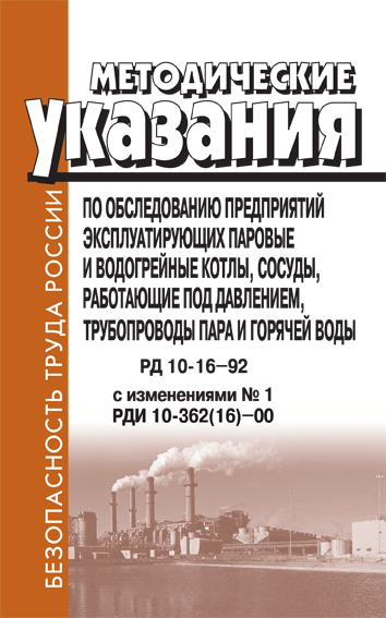 Методические указания по обследованию предприятий, эксплуатирующих паровые и водогрейные котлы, сосуды, работающие под давлением, трубопроводы пара и горячей воды. РД 10-16-92 (ЛД-112) в Улан-Удэ купить