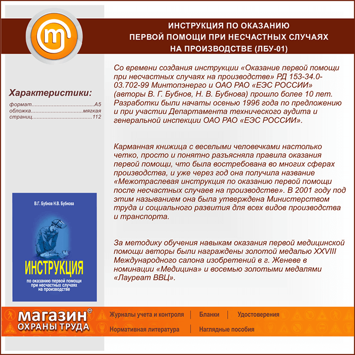 Инструкция по оказанию первой помощи при несчастных случаях на производстве (ЛБУ-01) в Улан-Удэ купить