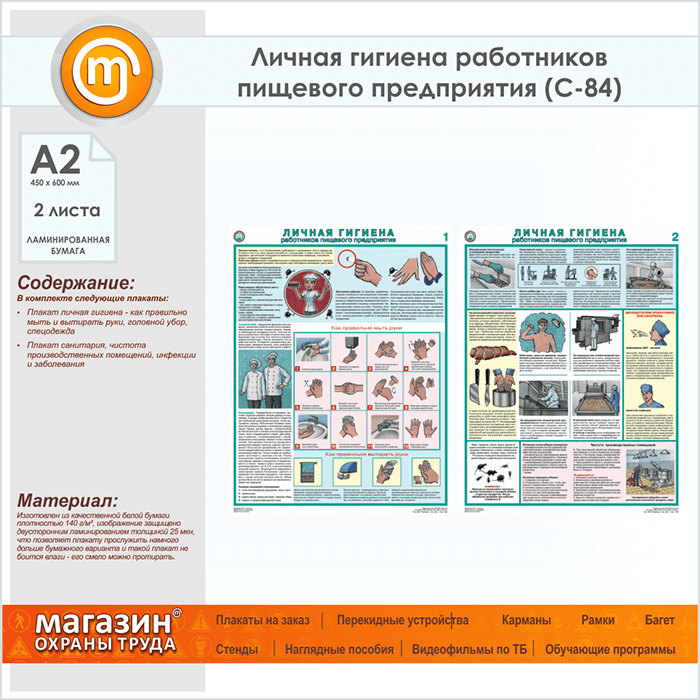Плакаты «Личная гигиена работников пищевого предприятия» (С-84, ламинированная бумага, А2, 2 листа) в Улан-Удэ купить