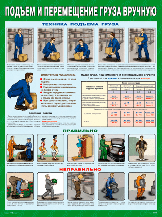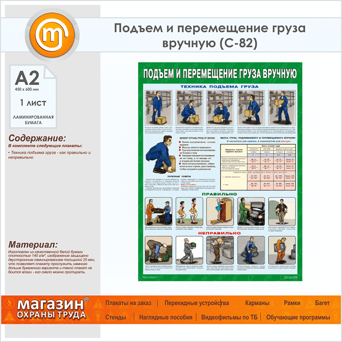 Плакат «Правила перемещения грузов вручную» (С-82, ламинированная бумага, А2, 1 лист) в Улан-Удэ купить