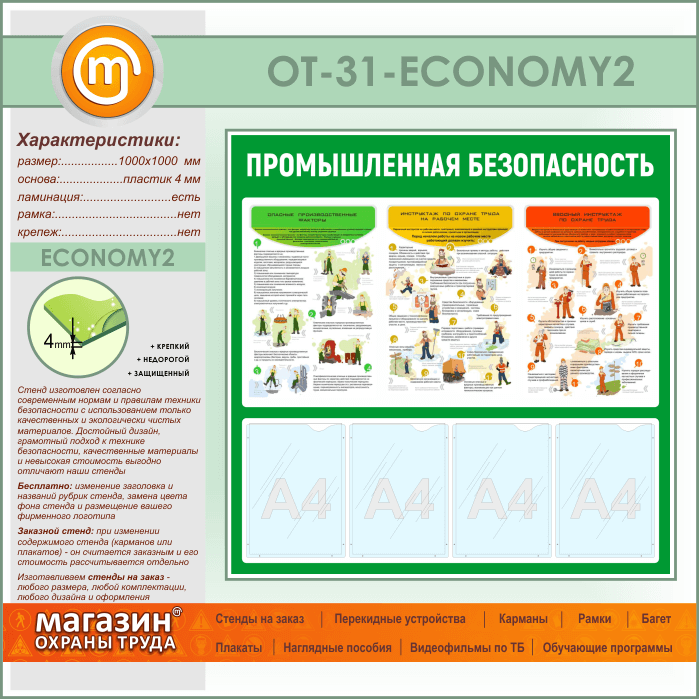 Стенд «Промышленная безопасность» с 4 карманами (OT-31-ECONOMY2) в Улан-Удэ купить