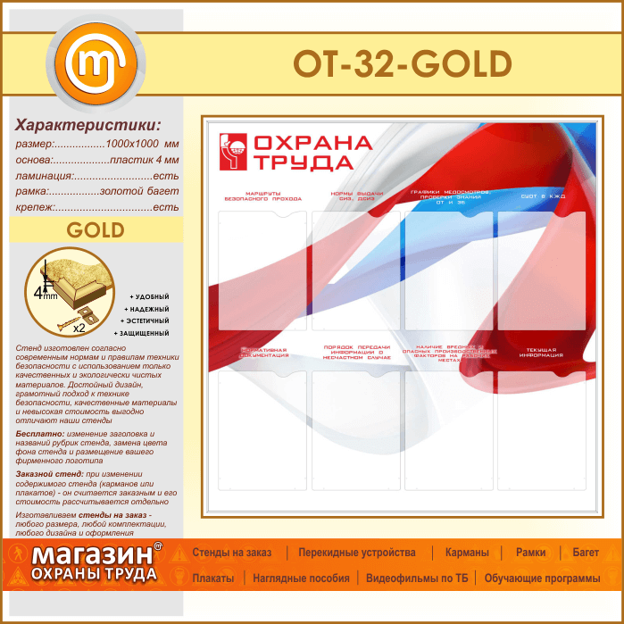 Стенд «Охрана труда» с 8 карманами (OT-32-GOLD) в Улан-Удэ купить