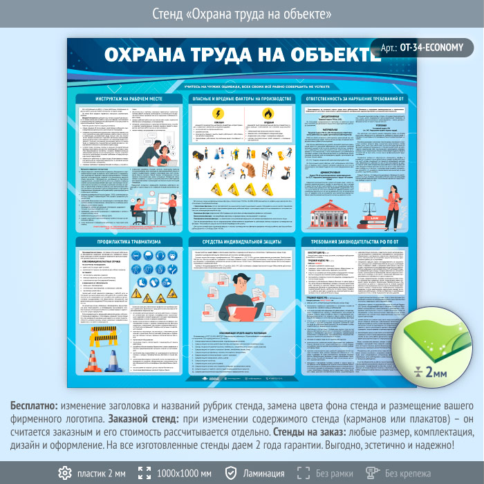 Стенд «Охрана труда на объекте» (OT-34-ECONOMY) в Улан-Удэ купить
