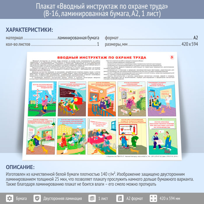 Плакат «Вводный инструктаж по охране труда» (В-16, ламинированная бумага, А2, 1 лист) в Улан-Удэ купить