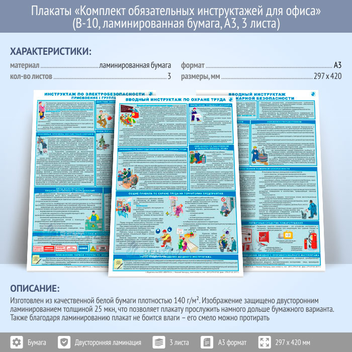 Плакаты «Комплект обязательных инструктажей для офиса» (В-10, ламинированная бумага, А3, 3 листа) в Улан-Удэ купить