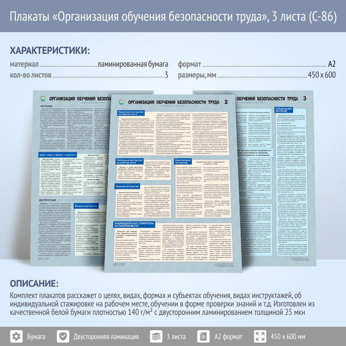 Плакаты «Организация обучения безопасности труда» (С-86, ламинированная бумага, А2, 3 листа) в Улан-Удэ купить
