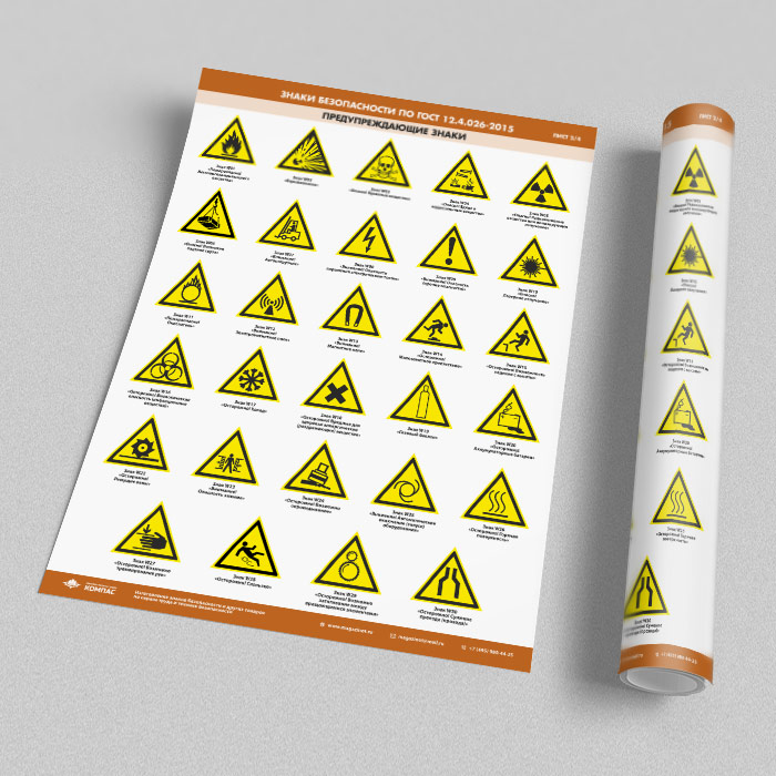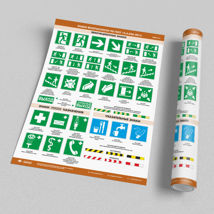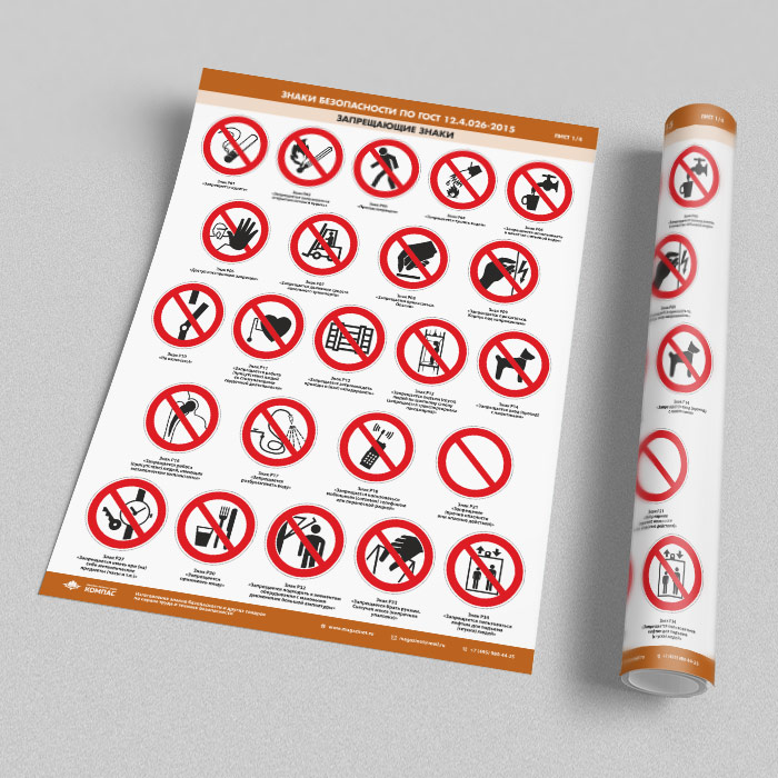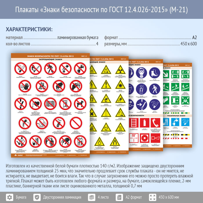 Плакаты «Знаки безопасности по ГОСТ 12.4.026-2015» (М-21, ламинированная бумага, А2, 4 листа) в Улан-Удэ купить