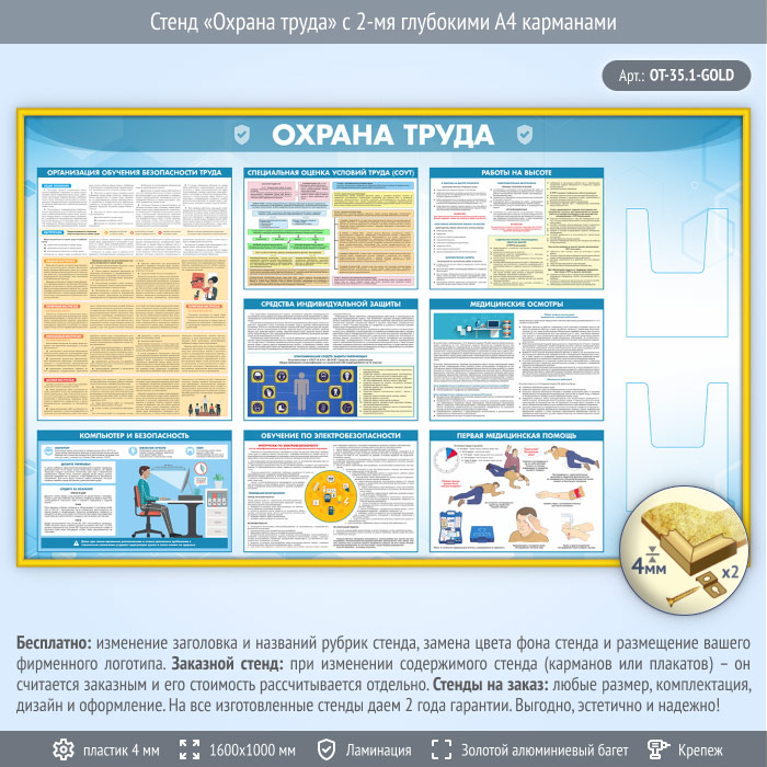 Стенд «Охрана труда» с 2-мя глубокими А4 карманами (OT-35.1-GOLD) в Улан-Удэ купить